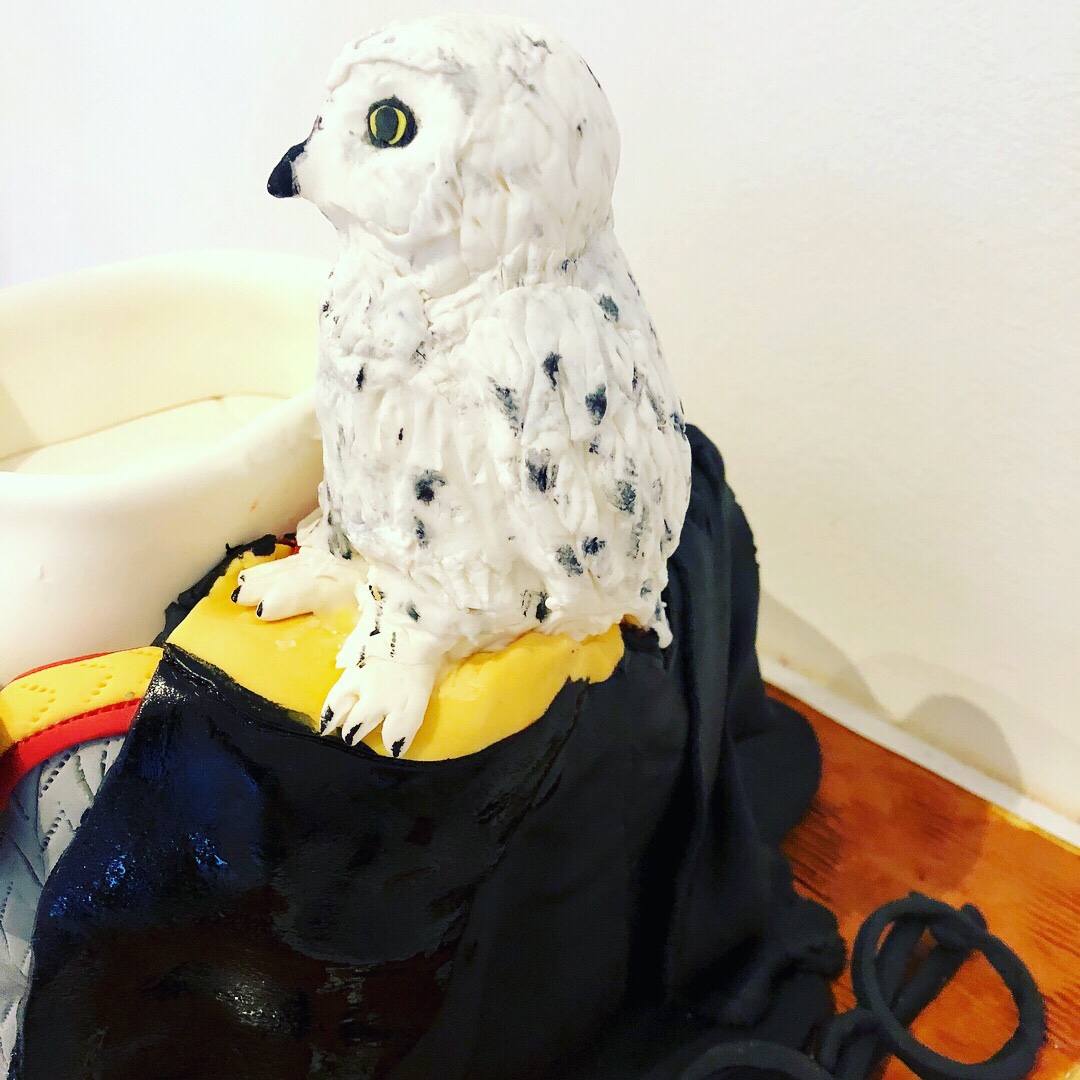 With edible Hedwig, golden snitch and wand 😍😍