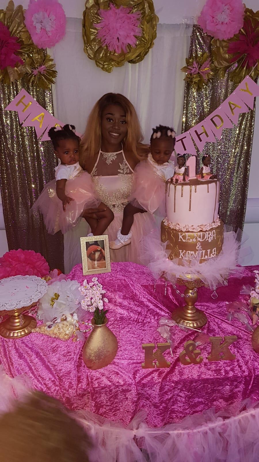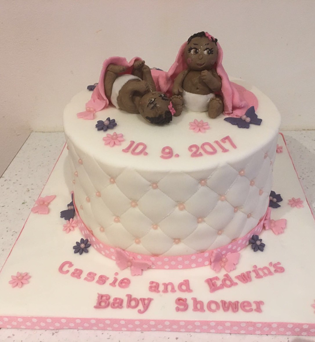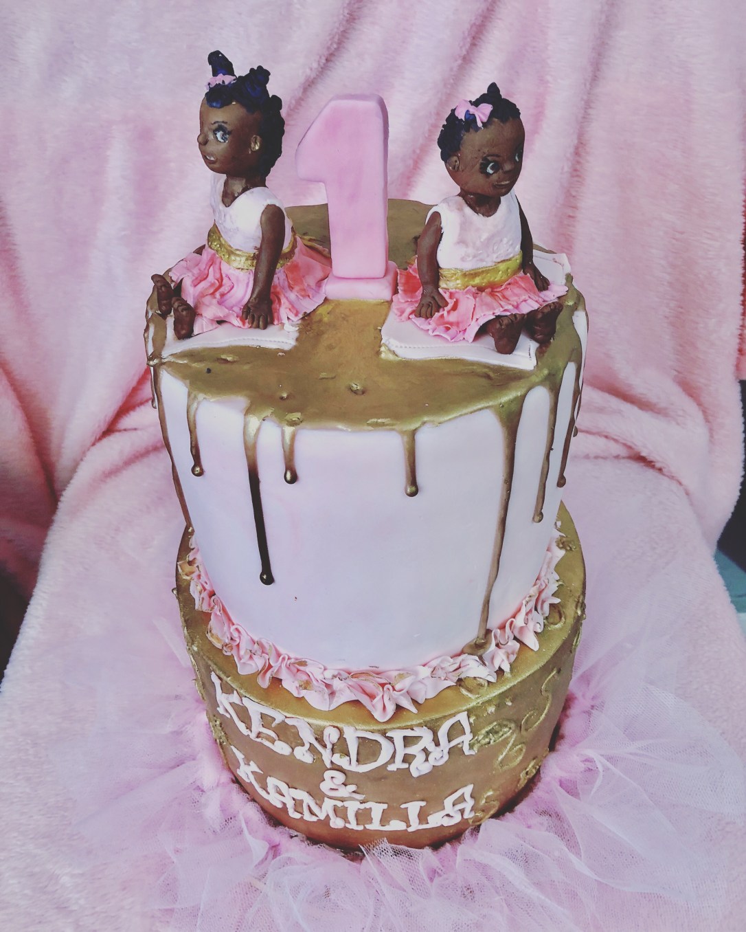 customer’s baby shower cake and now her beautiful twins’ first birthday cake 😍😍